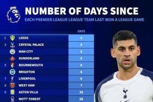体育资讯4月17日讯 《转会市场》统计了英超各队距离上次在联赛赢球的时间间隔,热刺已接近4个月未能获胜。