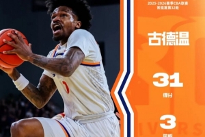 值得一提的是,迎战旧主的上海男篮外援古德温此役18投10中,砍下赛季新高的31分,此外还有3个篮板和7次助攻,其中首节就拿到了16分,关键的第四节也有8分入账,“今天其实是一场季后赛强度的比赛,我们也是失去了一些主要球员,所以比赛打得不是特别顺畅,但比赛中有不同的球员站出来,大家一起打出了团队篮球,也是很艰难的一场胜利。后续我们都要保持健康,保持这种势头。”