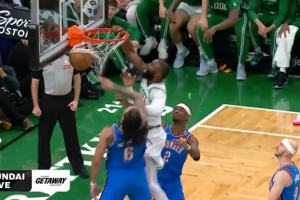 GIF-杰伦·布朗单臂隔扣,疑似大拇指割喉动作庆祝
